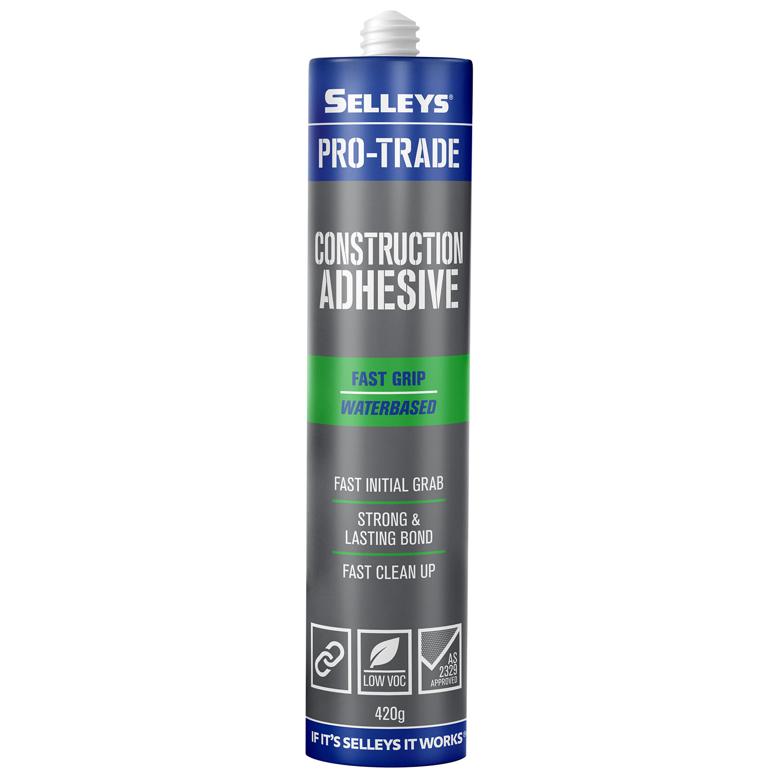 Selleys Pro Trade Construction Adhesive Fast Grip is a water-based, high strength construction adhesive that provides strong initial holding power.