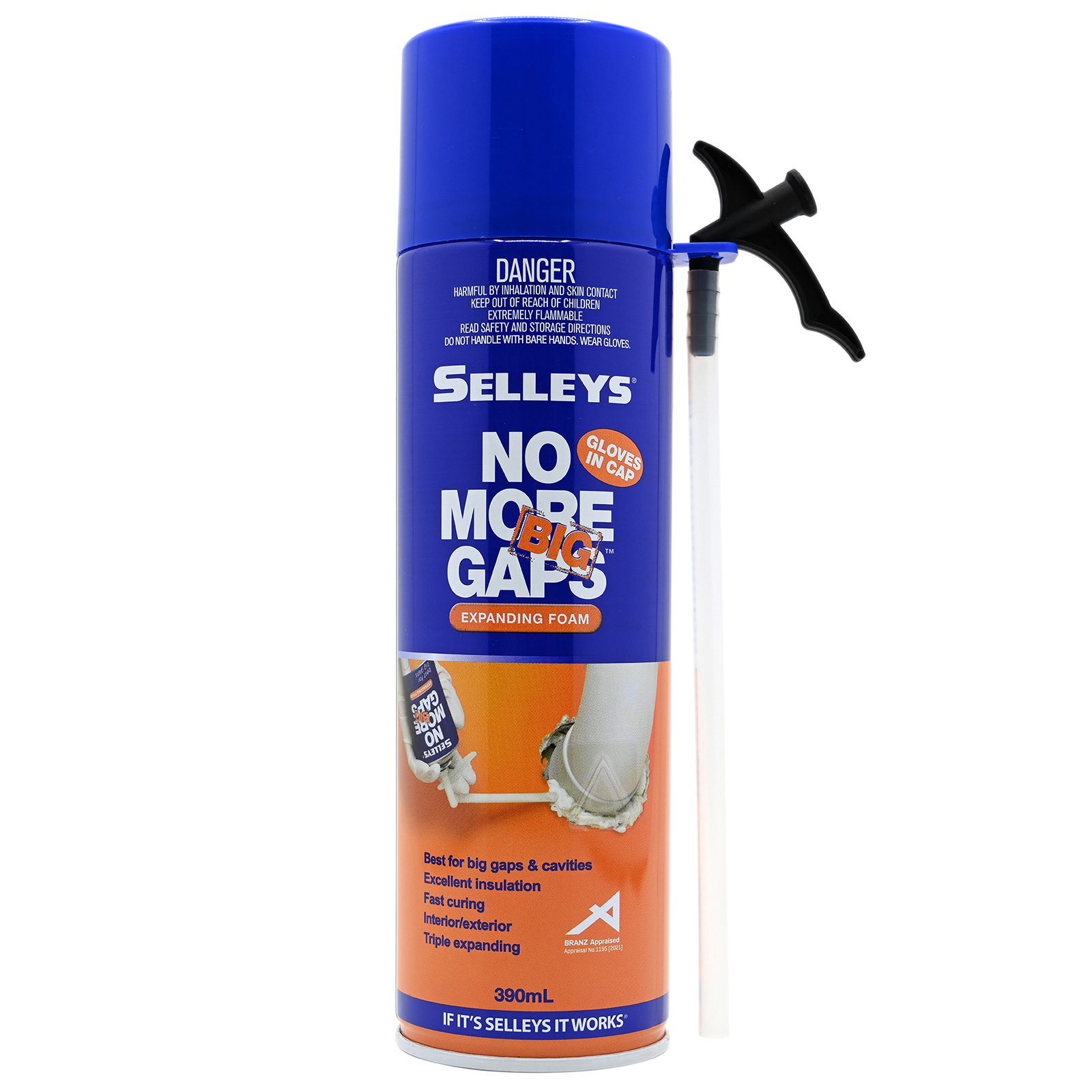 Selleys No More Big Gaps is an expanding foam, which cures into a semi rigid closed cell foam, making it ideal for filling large and irregular holes or cavities such as around pipes.