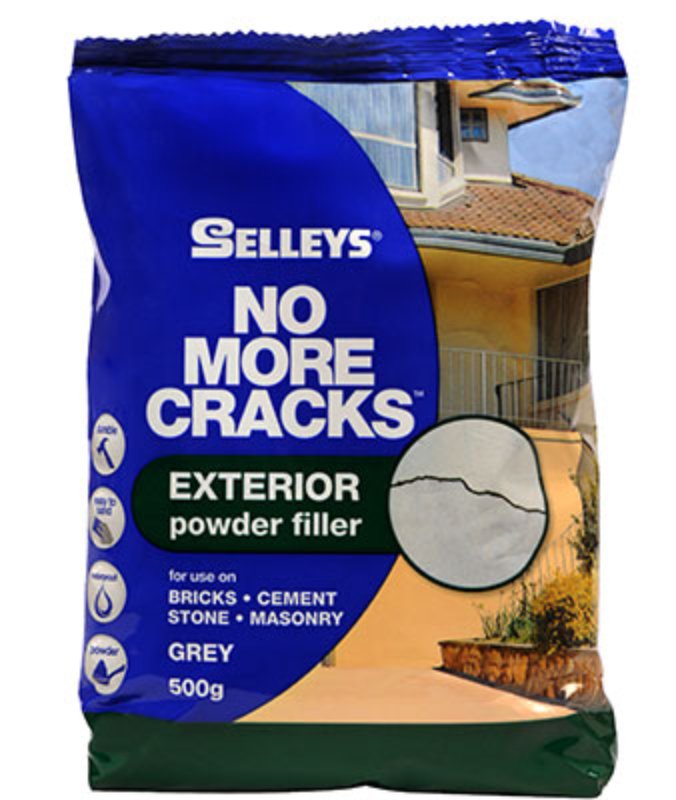 Selleys No More Cracks Exterior Powder Filler is for exterior cracks and holes in bricks, cement, stone and other masonry surfaces. It comes supplied as an easy to mix, cement based powder is waterproof and resistant to temperature and humidity changes.
