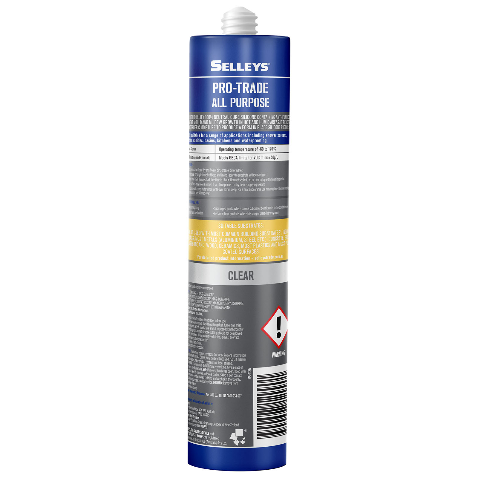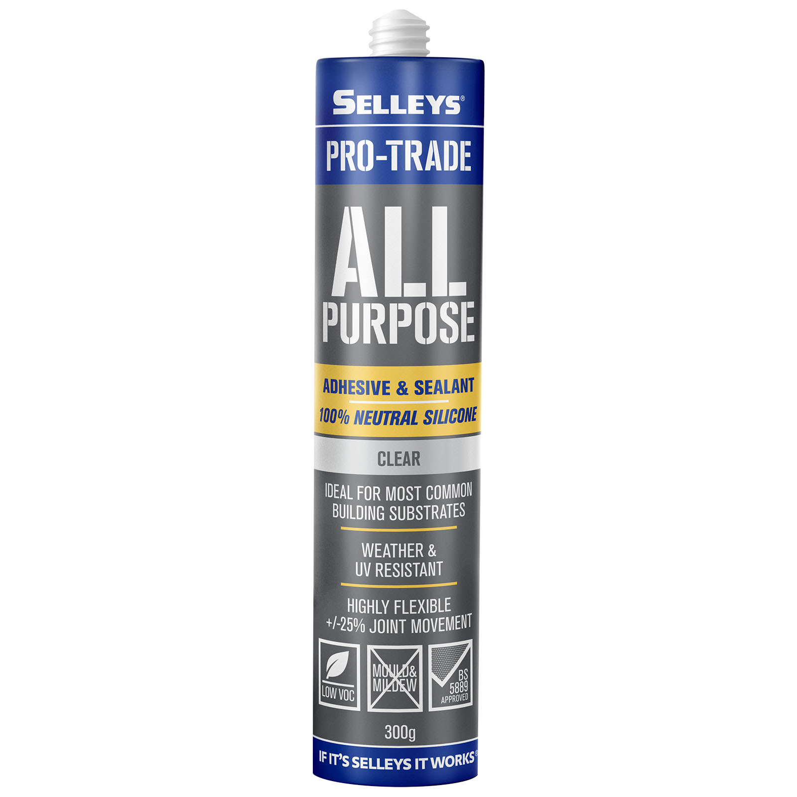 Selleys Pro Trade All Purpose Silicone is a high quality, 100% neutral cure silicone suitable for a range of applications containing anti-fungicide to prevent mould and mildew growth in hot and humid areas.