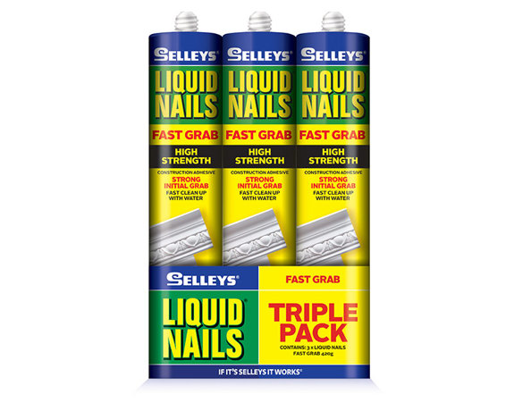 Selleys Liquid Nails Fast is the market leading fast grab, high strength construction adhesive. The new formula delivers 50% Stronger Grab compared with the previous formulation. Liquid Nails Fast can be used on a wide variety of surfaces and meets Australian Standard AS-2329-(1999). It is solvent free, Low Odour and Low VOC, and provides fast and easy clean up with water.