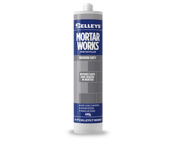 Selleys Mortar Works is a textured, ready to use weather resistant gap filler. It is available in a range of colours to match existing mortar. Its mortar-like texture allows easy repair of unsightly cracks and gaps in brickwork around the home.
