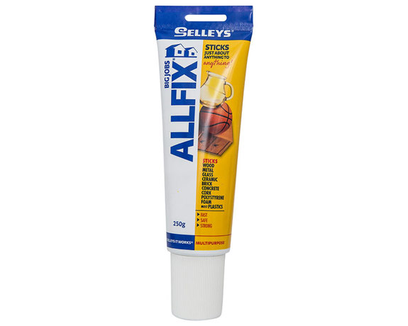 Selleys All Fix is a solvent free, high strength adhesive with fast grab on porous surfaces. It eliminates the need for nails and screws in many jobs. It has a thick, non-runny consistency that will bond a wide variety of materials.